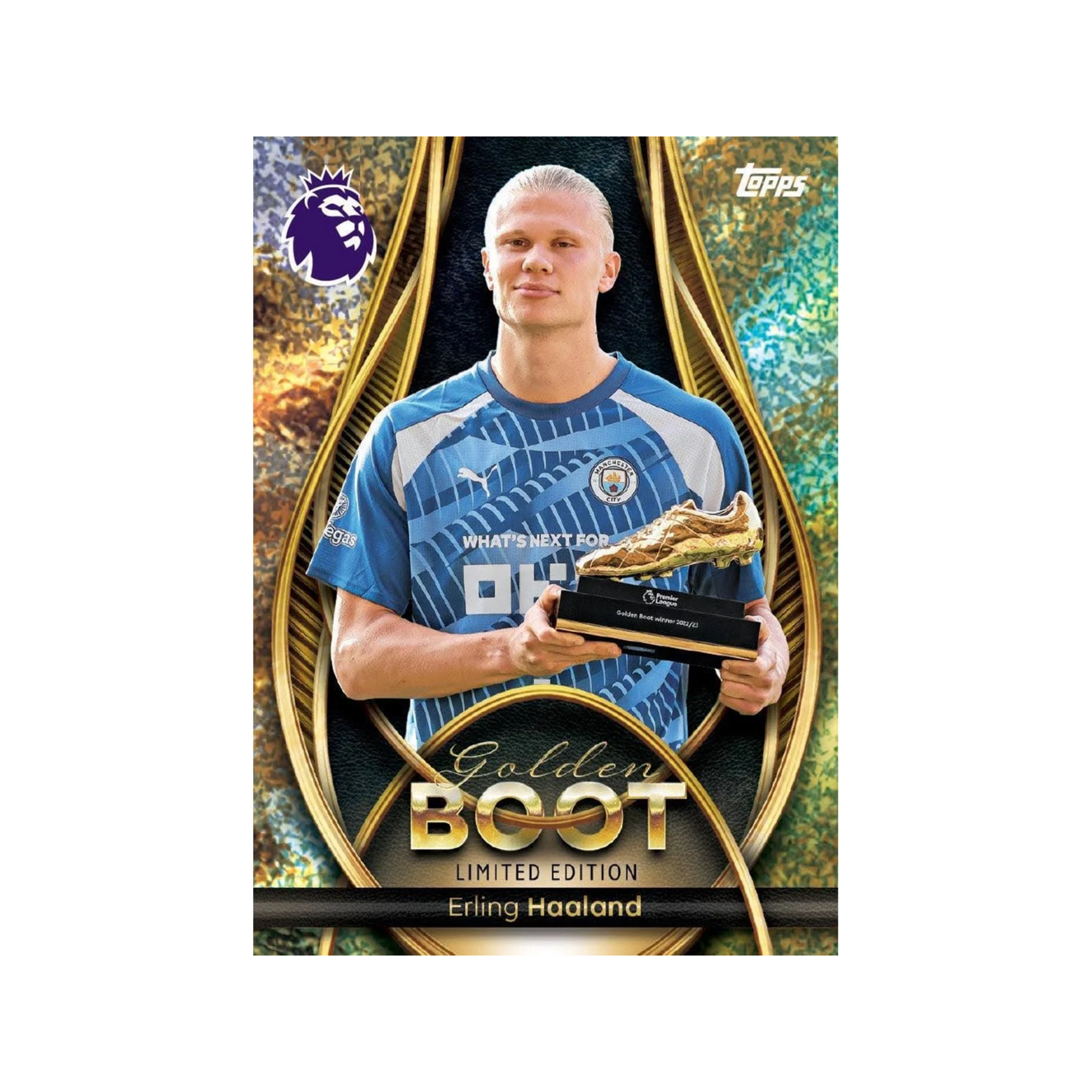 Inneholder 5 boostere (50 kort) + 1 pakke med 7 eksklusive Golden Boot Limited Edition-kort